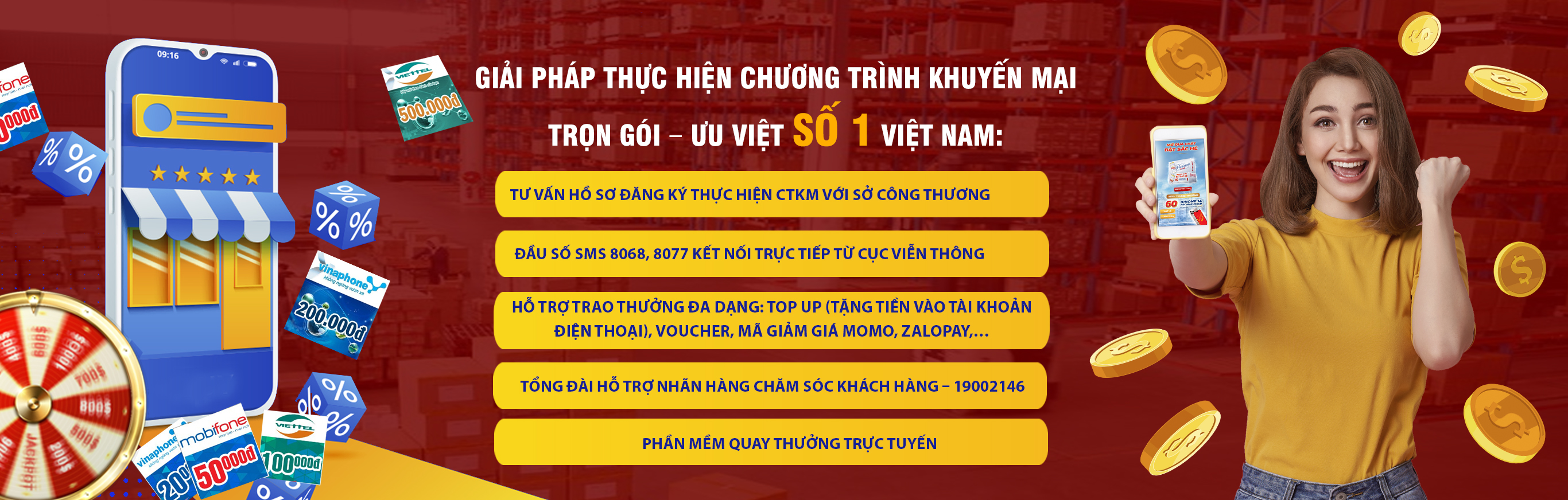 Là giải pháp tổng thể giúp doanh nghiệp thực hiện 1 chương trình khuyến mại trực tuyến: cung cấp đầu số nhắn tin, website tương tác, quay thưởng trực tuyến, công cụ thống kê, chăm sóc khách hàng trực tuyến